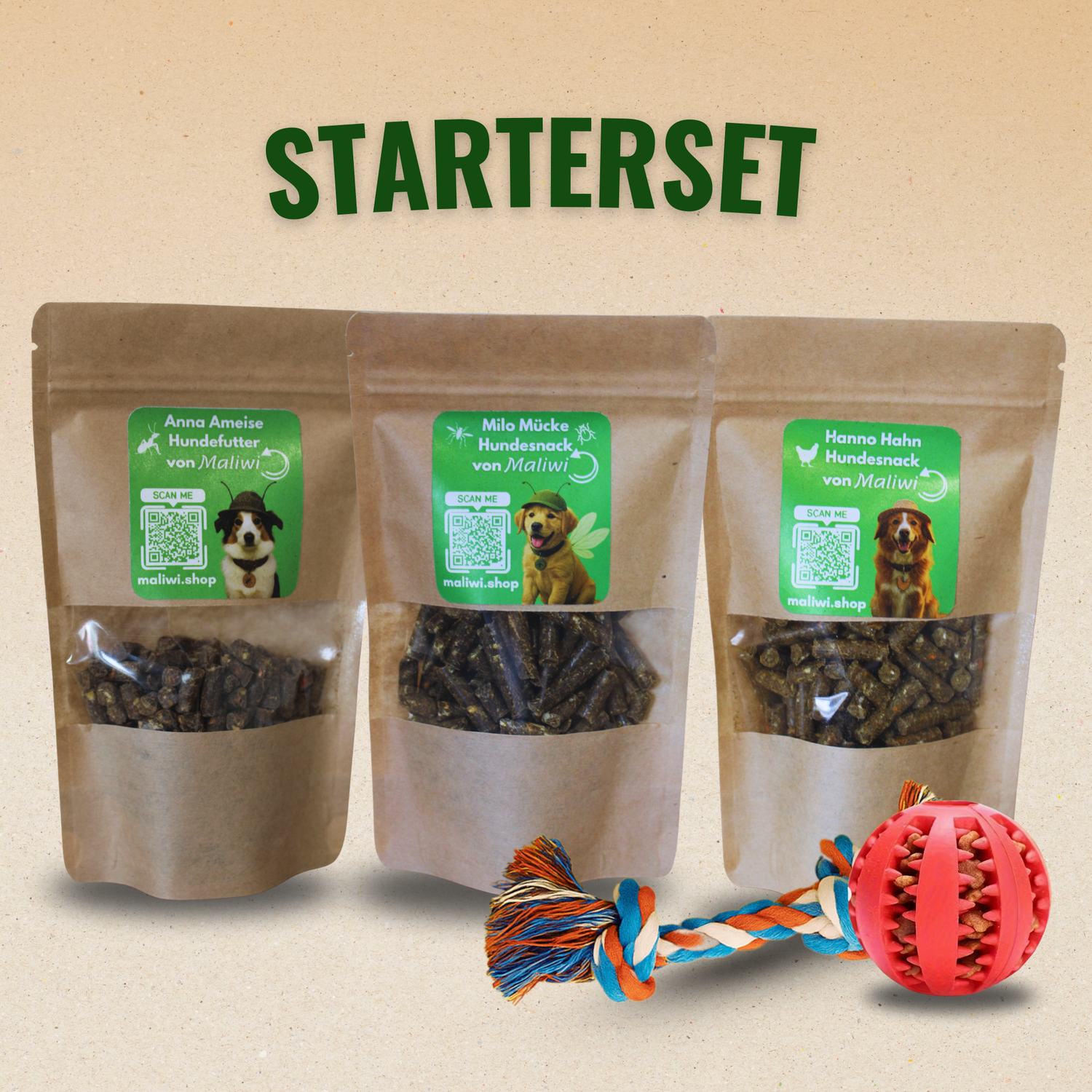 Maliwi verwendet in Milo Mücke (Snack) und Anna Ameise (Futter) hochwertiges Insektenmehl, ideal für Hunde mit Unverträglichkeiten.